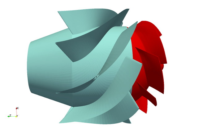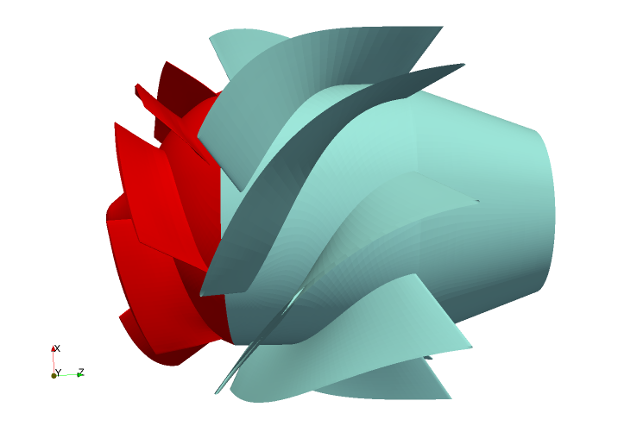 今回使用する軸流ポンプモデルは、外部の.mshメッシュ形式からOpenFOAM®メッシュ形式に変換され、