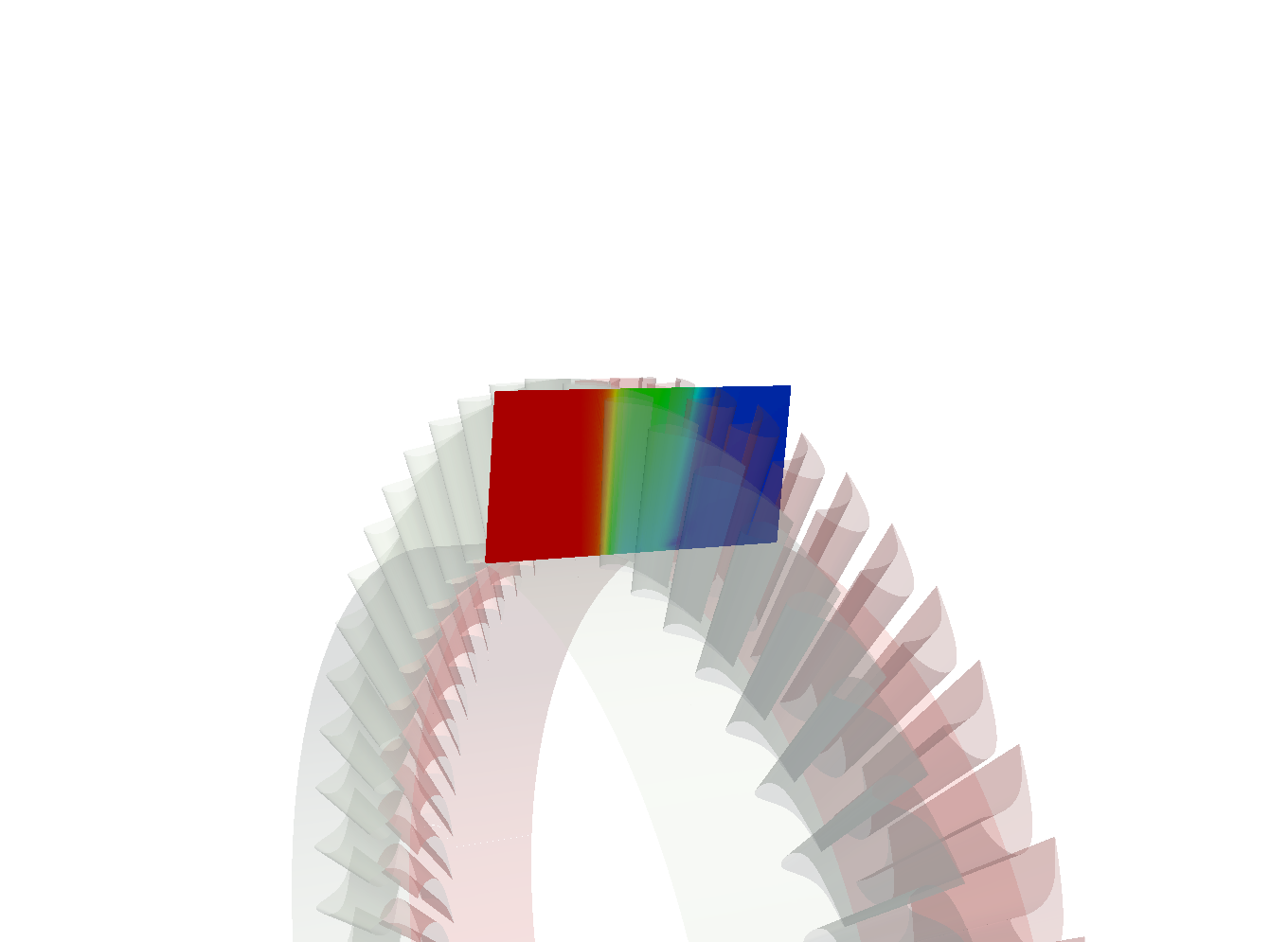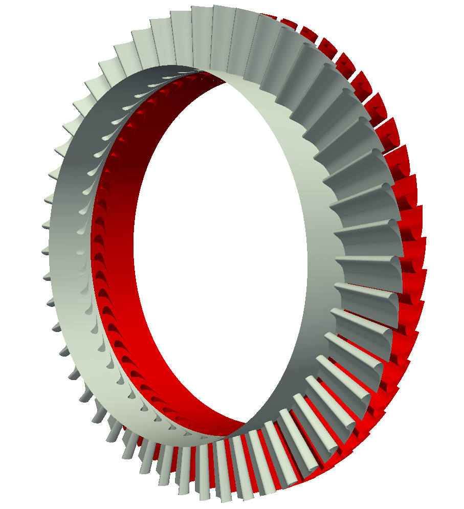 下図は、本解析例(軸流タービンの解析例)で使用した軸流タービンのブレード部分の形状データです。
