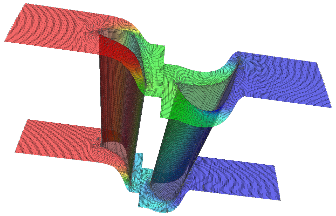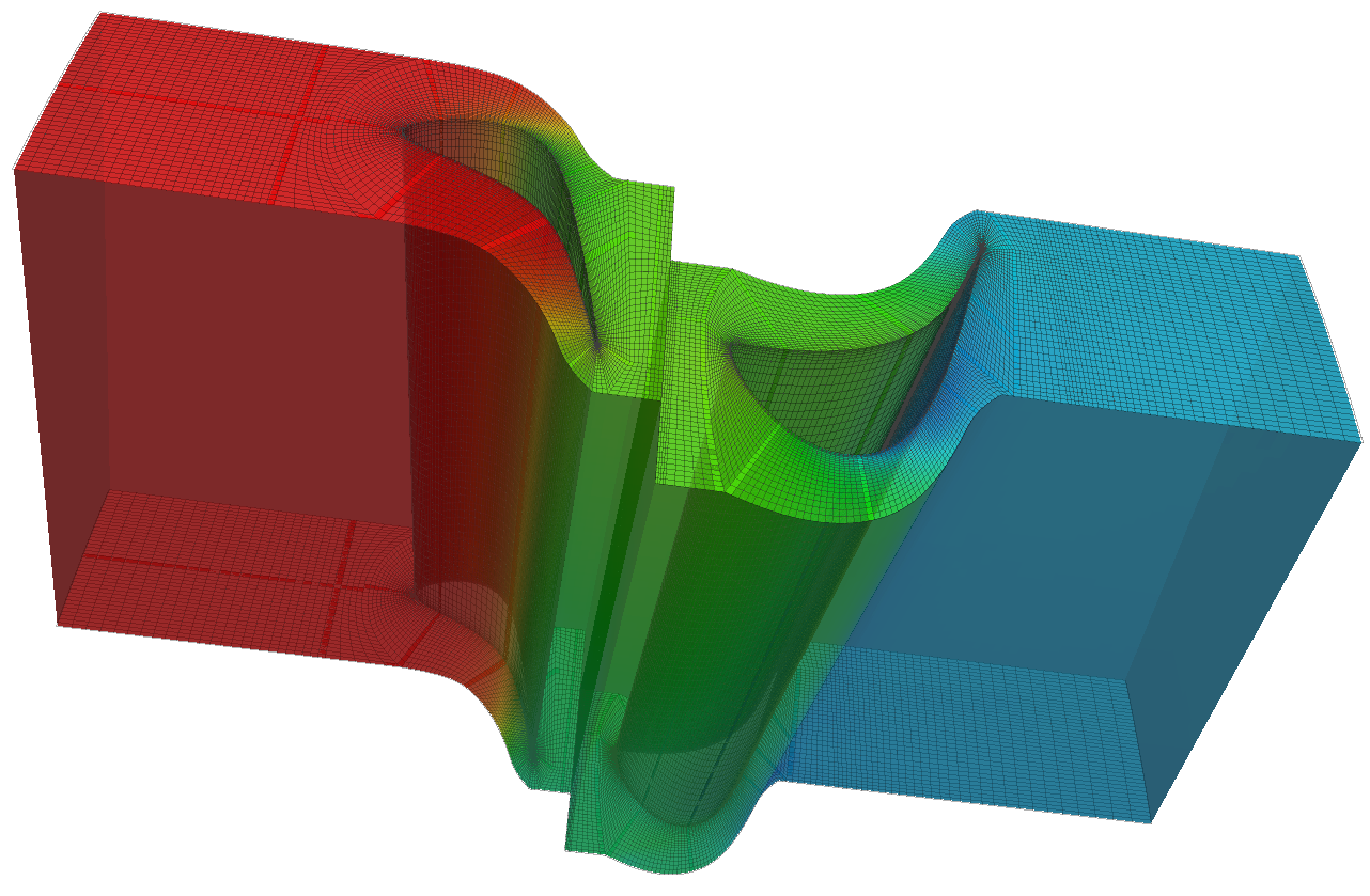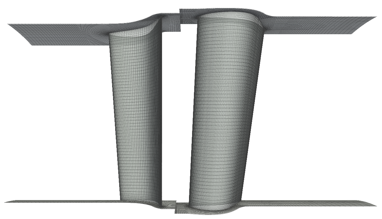 下図は、本解析例(軸流タービンの解析例)のメッシュデータの一部です。