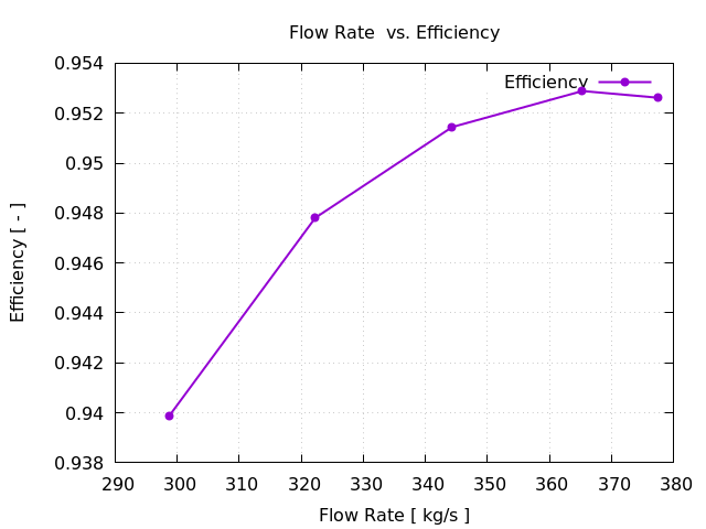 圧縮流体モデル 定常流モデル 媒体:蒸気(理想気体) 動粘度:μ= 2.4e-5 [Pa.s] 回転速度:3000 [RPM] 流速:365 [kg/s] |