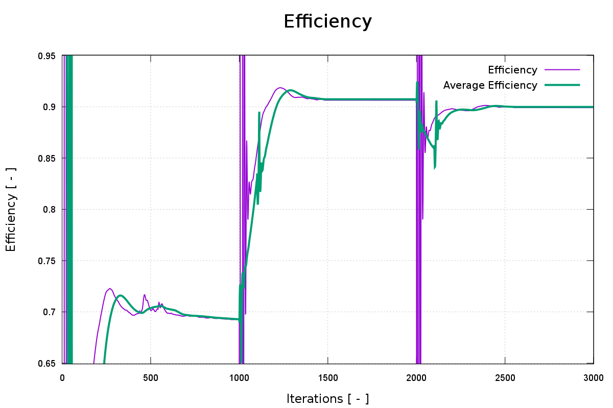 回転機械では、通常、明確な傾向が観察されます。細かいメッシュはわずかに高い効率につながります。
