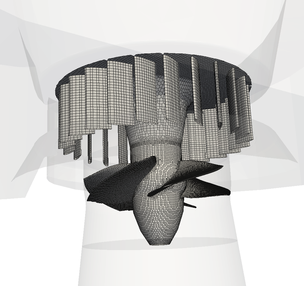 下図は、本解析例(カプランタービンの解析例)で使用したメッシュデータです。